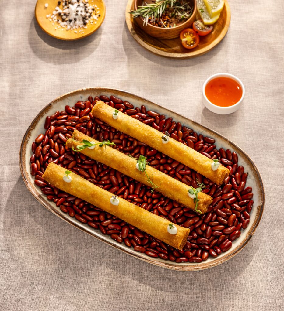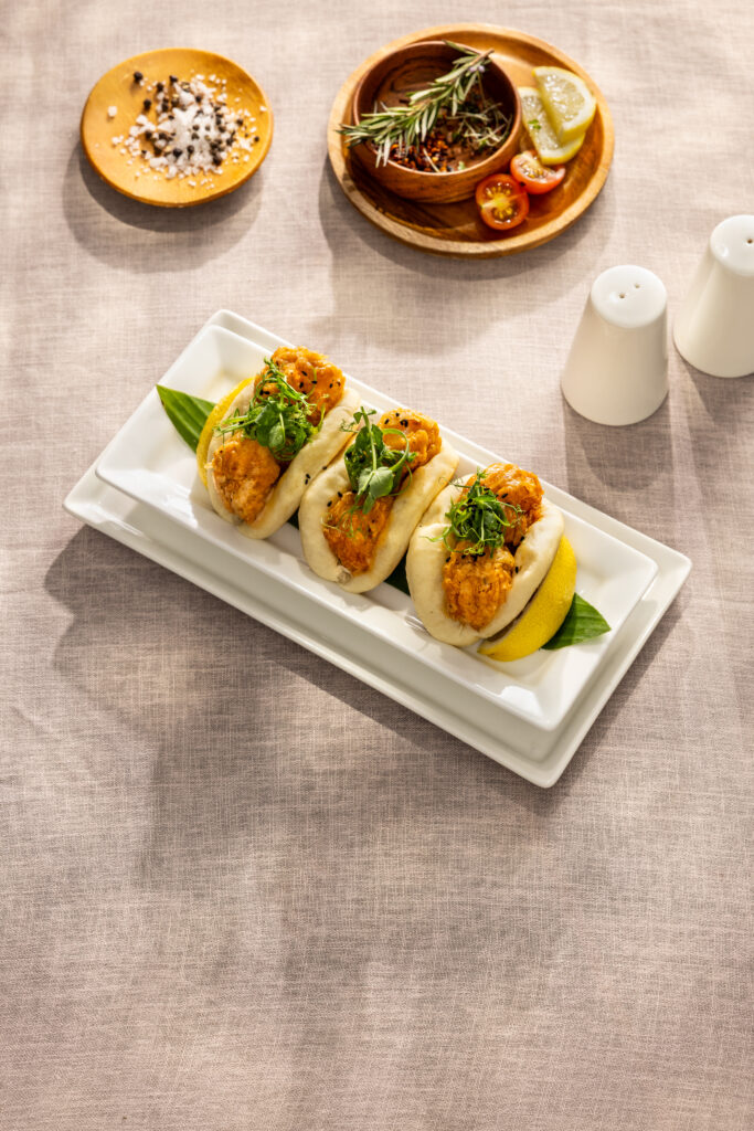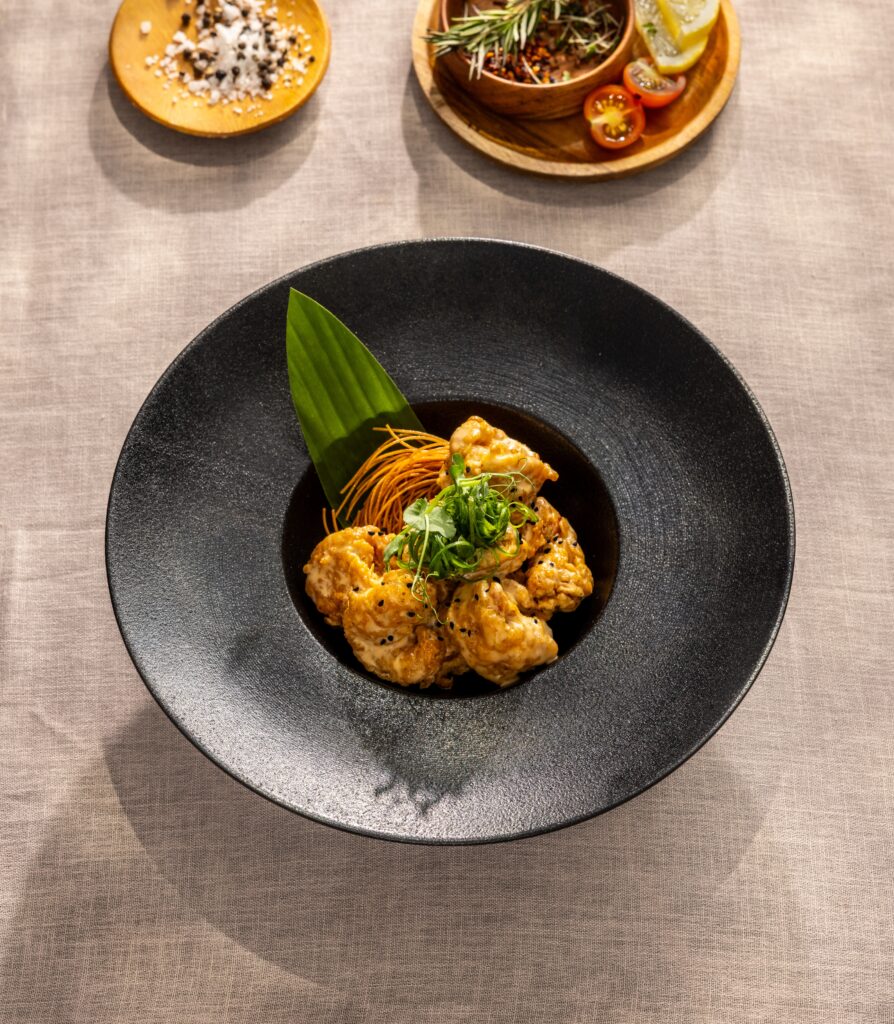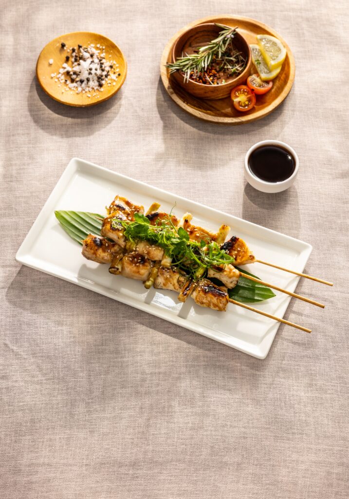 Chicken Yakitori 54 SAR ياكيتوري الدجاج Grilled chicken skewers glazed with teriyaki sauce, served with charred green onion and toasted sesame, offering a balanced sweet and smoky flavor. أسياخ دجاج مشوي متبلة بصلصة الترياكي، تُقدَّم مع بصل أخضر مشوي ورشة من السمسم المحمّص، بمزيج متوازن من النكهة الحلوة و المداخنه (375 kcal)