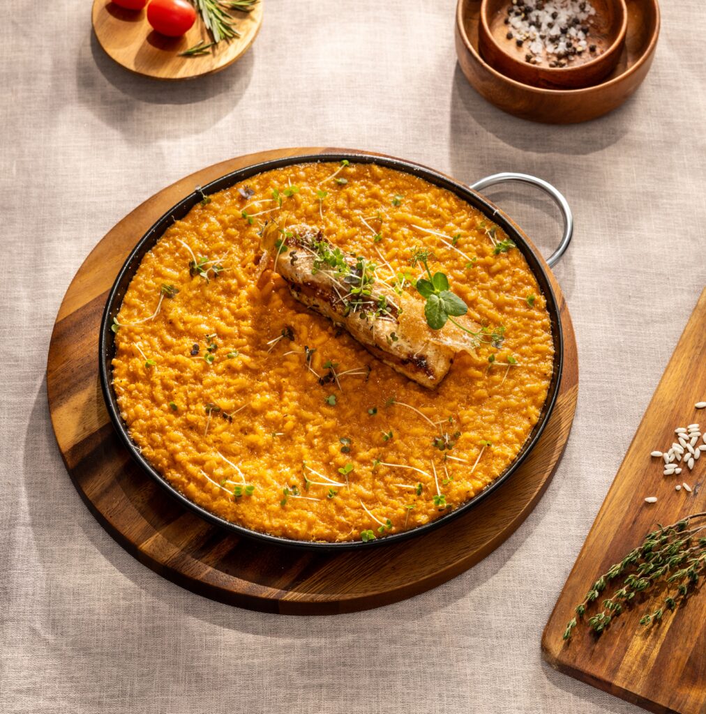 Salmon Risotto 74 SAR ريزوتو السالمون Creamy risotto served with grilled salmon, enhanced with butter and Parmesan. ريزوتو كريمي يُقدَّم مع سلمون مشوي، بنكهة الزبدة والبارميزان (898 kcal)